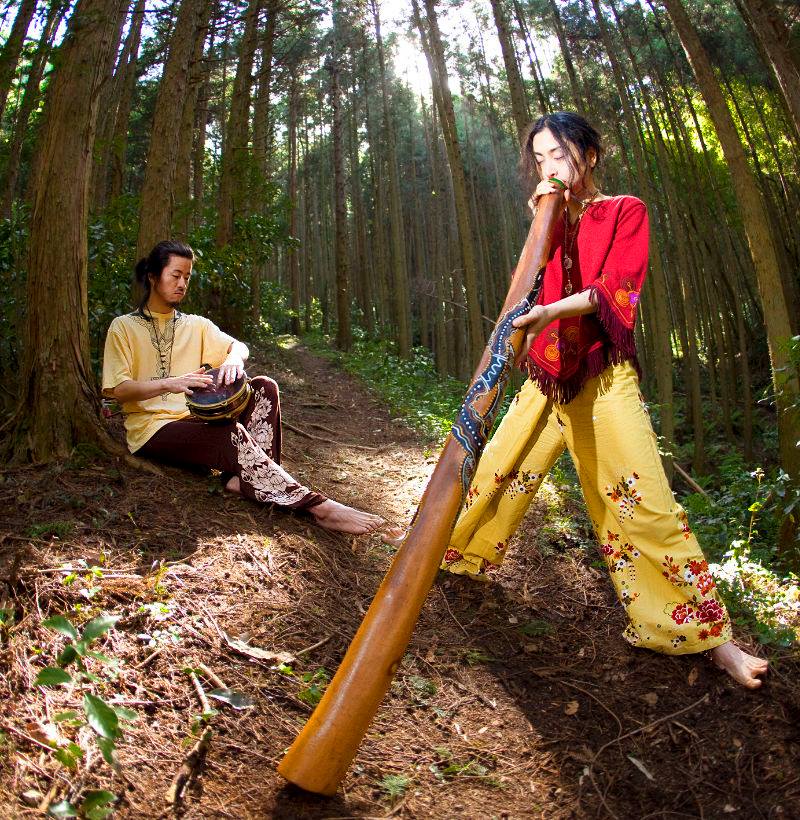 morning set ASUKAとNORIの2人による音楽ユニット。 民族楽器の即興演奏からギターとloop